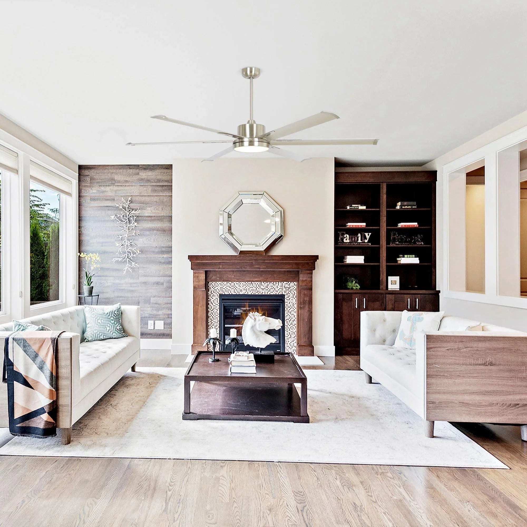 Strong wind power, efficient coverage: The 65-inch large-size aluminum fan blades are matched with a DC motor, providing a strong air volume of 6549 CFM, easily covering a large space of more than 350 square feet, bringing a fast and uniform cooling experience.