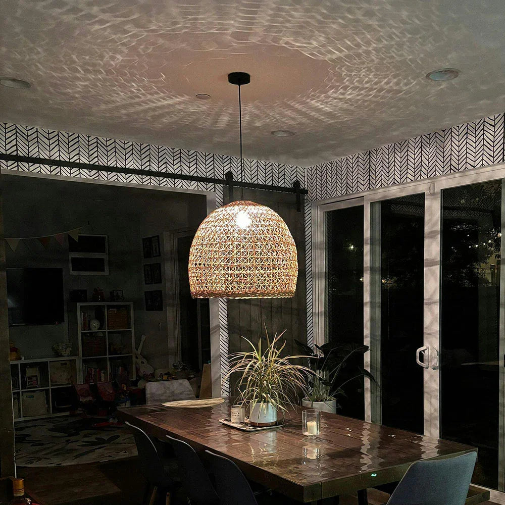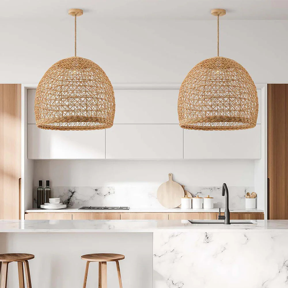 The natural materials and unique shape of the pendant create a warm and inviting atmosphere, making it perfect for any room in your home.