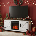 147cm/58" Recessed Electric Fireplace TV Stand with Closed Storage, Storage Cabinet with Adjustable Shelves, Fits Up to 65" TVs