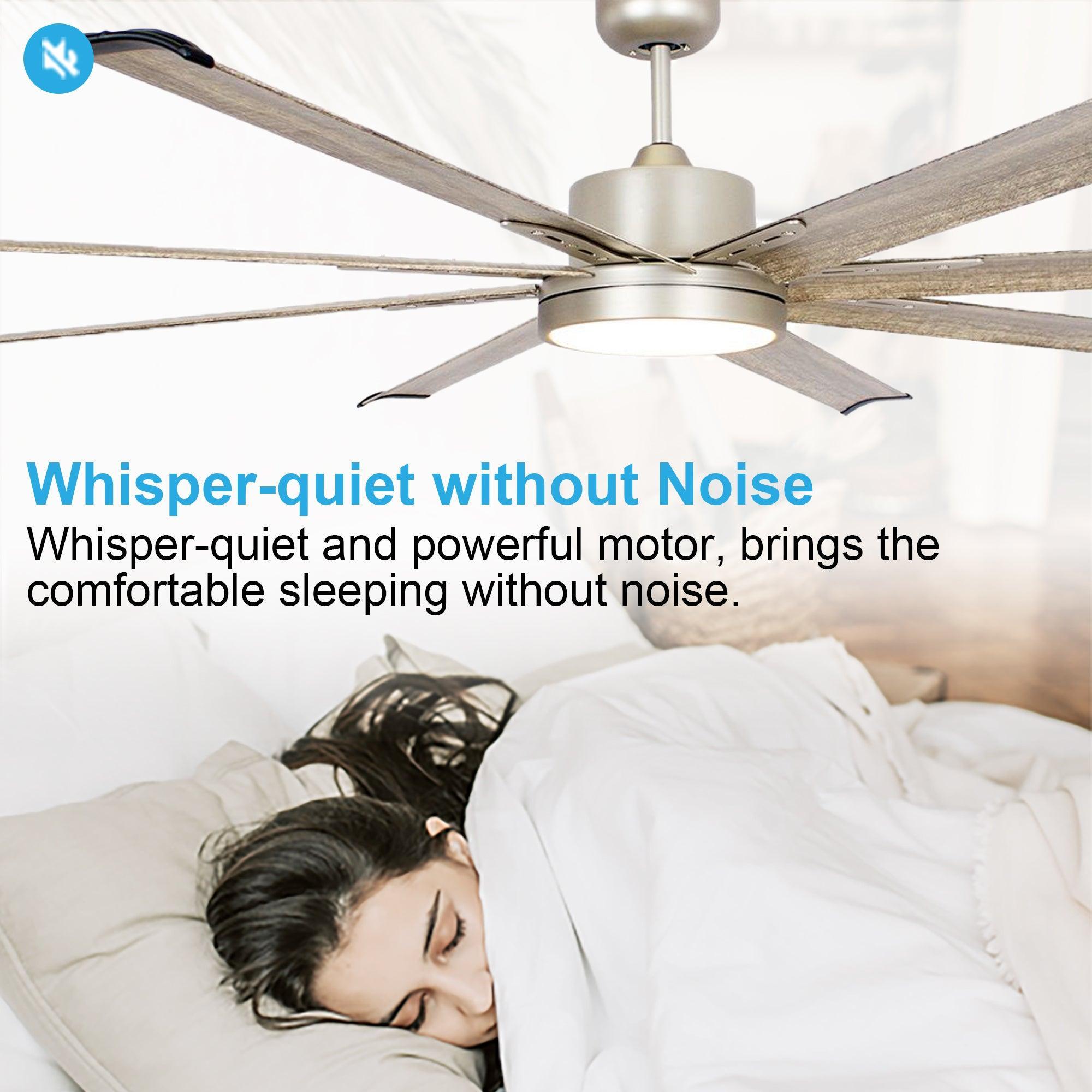 This 72 in. modern larger ceiling fan comes in a handsome satin nickel finish, with 8 straight-edged blades in a matching wood finish and a DC motor that can be reversed with the included remote control. An energy-efficient LED light is integrated into the design and covered with a white glass diffuser lens. It is a great way to enhance your living space and definitely will become a great conversation piece of your house.