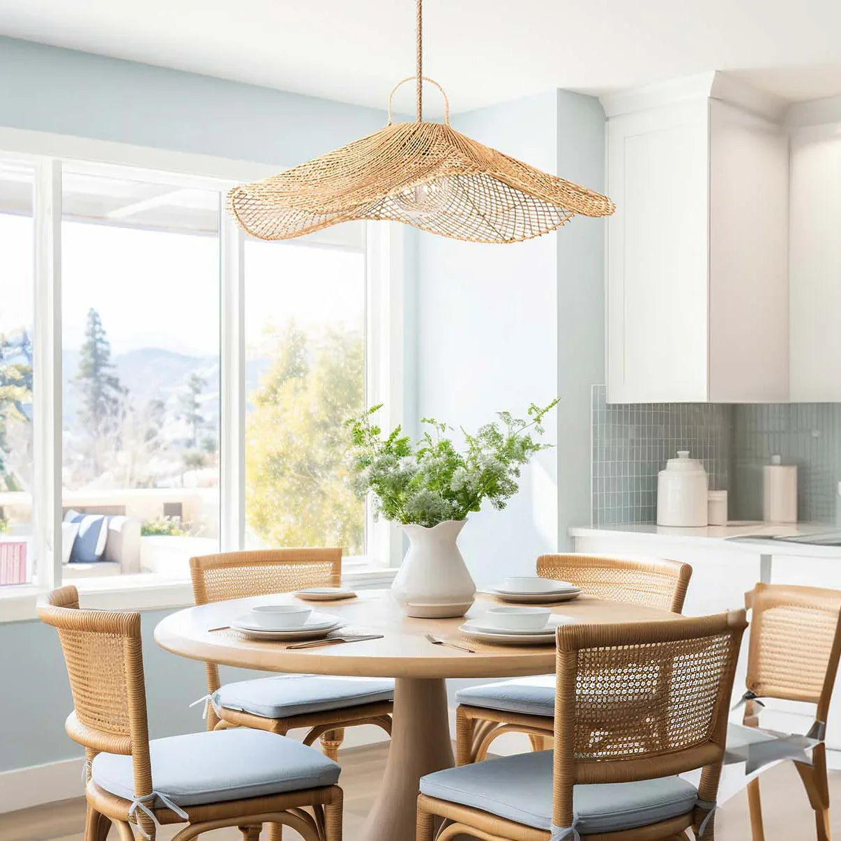 This natural rattan pendant light from Rowabi is a beautiful and classy way to add a touch of luxury to your home. The handwoven shade creates a warm and inviting glow, and the natural color will complement any décor. This pendant light is perfect for a living room, kitchen island, or bedroom.